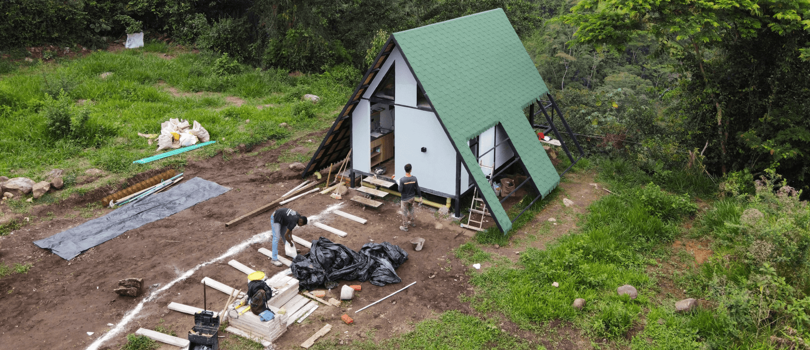 Con un diseño interior, optimizado al máximo, configuramos en planta baja una pequeña cocina y un baño funcional y sala de estar con uso múltiple, donde cada centímetro ha sido pensado con precisión. En el segundo nivel se encuentra la habitación, elevada como un nido cálido desde donde el usuario puede descansar, leer o simplemente mirar el horizonte.
